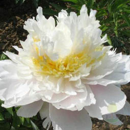 Махровый шаровидный. Цветок 17х11 см, вначале светло-жёлтый, в полном роспуске розоватый. Цветение обильное, в поздние сроки. Высота 80 см. Растёт быстро.